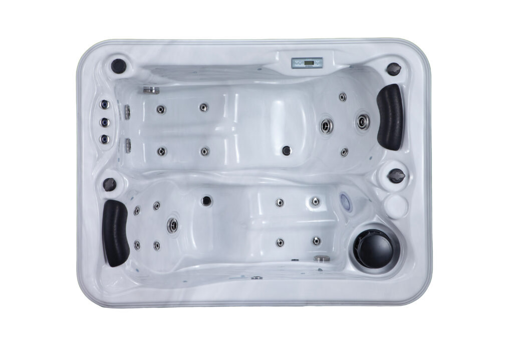 Le mini spa Moorea offre deux places allongées l’une en face de l’autre. Ce spa robuste, de la gamme Essentielle, s’adapte parfaitement à n’importe quel balcon, patio ou terrasse.